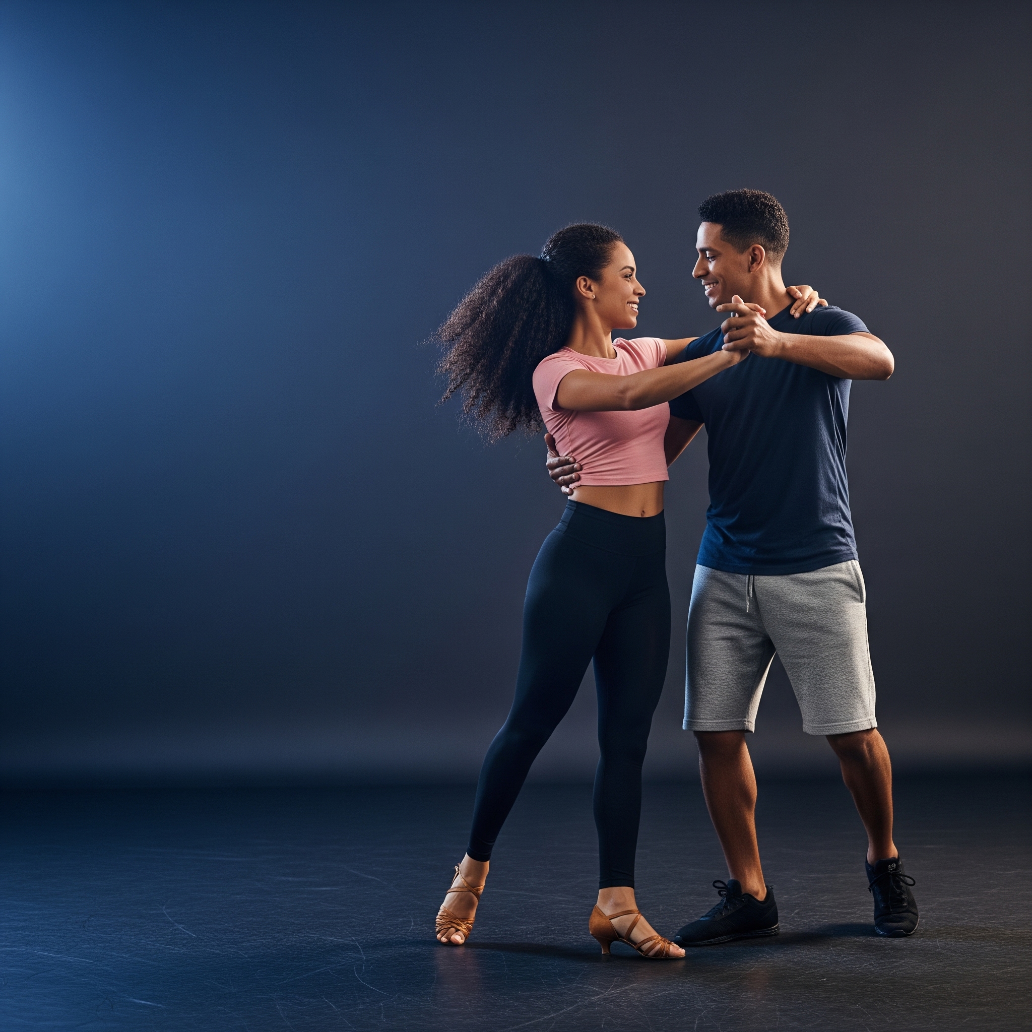 Clases grupales en pareja de baile como salsa, merengue o bachata o bien clases grupales de rumba gym.